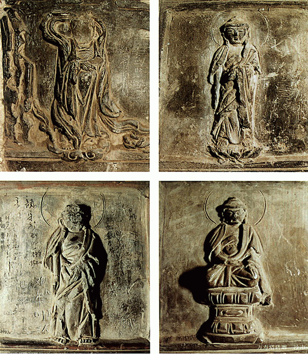 磚 雕 萬(wàn)壽塔座落在荊州市荊江大堤內(nèi)側(cè)古觀音磯上,是16世紀(jì)中葉,明藩第七代遼王朱憲節(jié)遵嫡母毛太妃之命為嘉靖帝祈壽而建。塔身內(nèi)外除玉雕佛龕坐佛外,還有兩千多塊磚雕。藝人以浮雕和線刻手法塑造了神態(tài)各異的佛像、動(dòng)物、花鳥圖案。磚雕兩側(cè),還以漢、滿、蒙、藏、回五種文字刻有捐資者姓名、捐資數(shù)目。